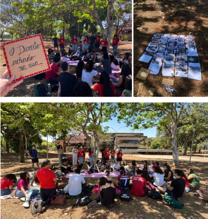 As autoras dão à dimensão pedagógica das AJUPs no interior da universidade, afirmando que “O Direito Achado na Rua constitui a base teórica indispensável para as Assessorias Jurídicas Populares. Ambas partem da mesma premissa: o reconhecimento de que os movimentos sociais são sujeitos produtores de direito e que a função do jurista crítico é colaborar, em pé de igualdade, na construção desses processos emancipatórios. Pois é nas ruas — onde a lei muitas vezes silencia, mas a vida clama — que o direito renasce. O Direito Achado na Rua é, portanto, mais que uma proposta acadêmica: é um gesto de insurgência, um grito coletivo que recorda à sociedade que o verdadeiro direito se faz de chão, de luta e de povo”.